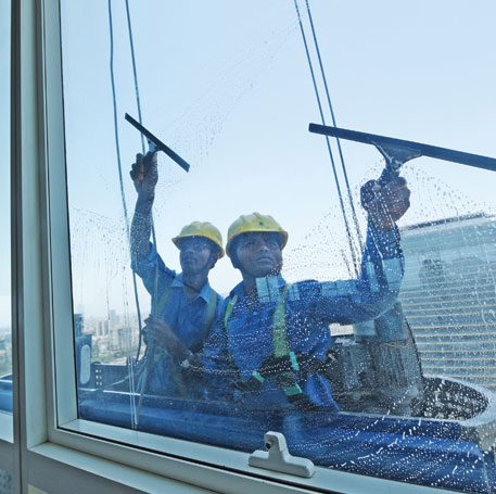 - For the outside view from your office / home, our professional spider men hanging on a rope to ensure that your view is clear, by cleaning the building glasses from outside